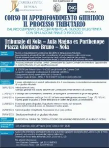 Camera Civile di Nola, con il patrocinio di COA Nola, ODCEC e DiG, ha organizzato il “Corso di approfondimento giuridico. Il processo tributario”